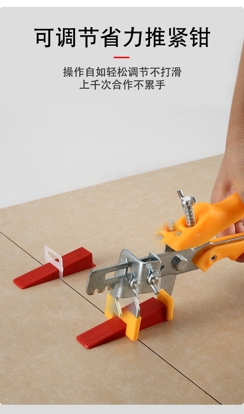 3瓷砖找平器检查平直度时,应检查2M水平误差不应超过3mm,相邻砖之间的高度差不应超过2mm4瓷砖找平器操作过程中,地板必须牢固粘合,空鼓必须控制在5%以内,单面空鼓区域不得超过10%,以免影响瓷砖的美观和牢固5地砖的宽度为2mm,小于等于3mm,此外接缝应均匀6水平误差不得超过4mm#。